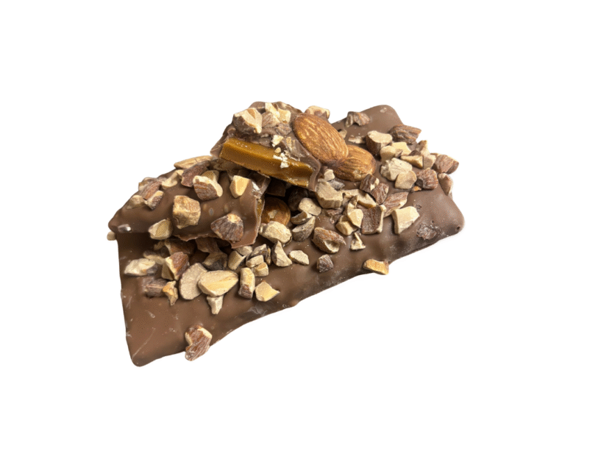 It’s the real Wisconsin butter that makes this confection so wonderfully delicious! It starts with a rich and buttery toffee center coated with sweet milk chocolate and then it’s loaded with a layer of freshly roasted almonds.