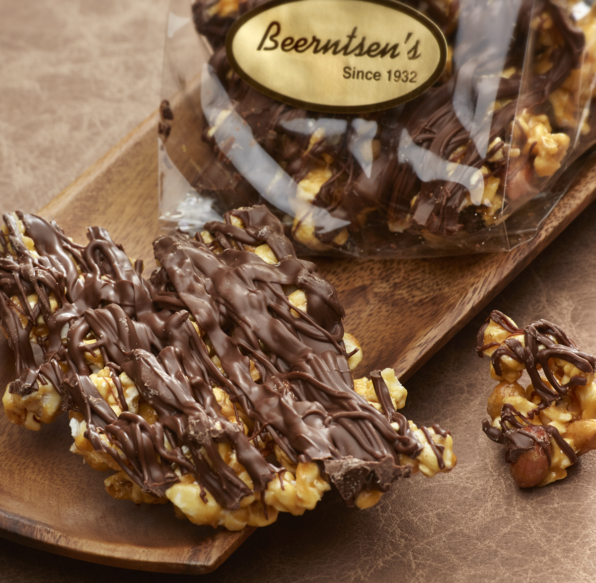 Fresh caramel corn made in small batches, drizzled with milk chocolate.