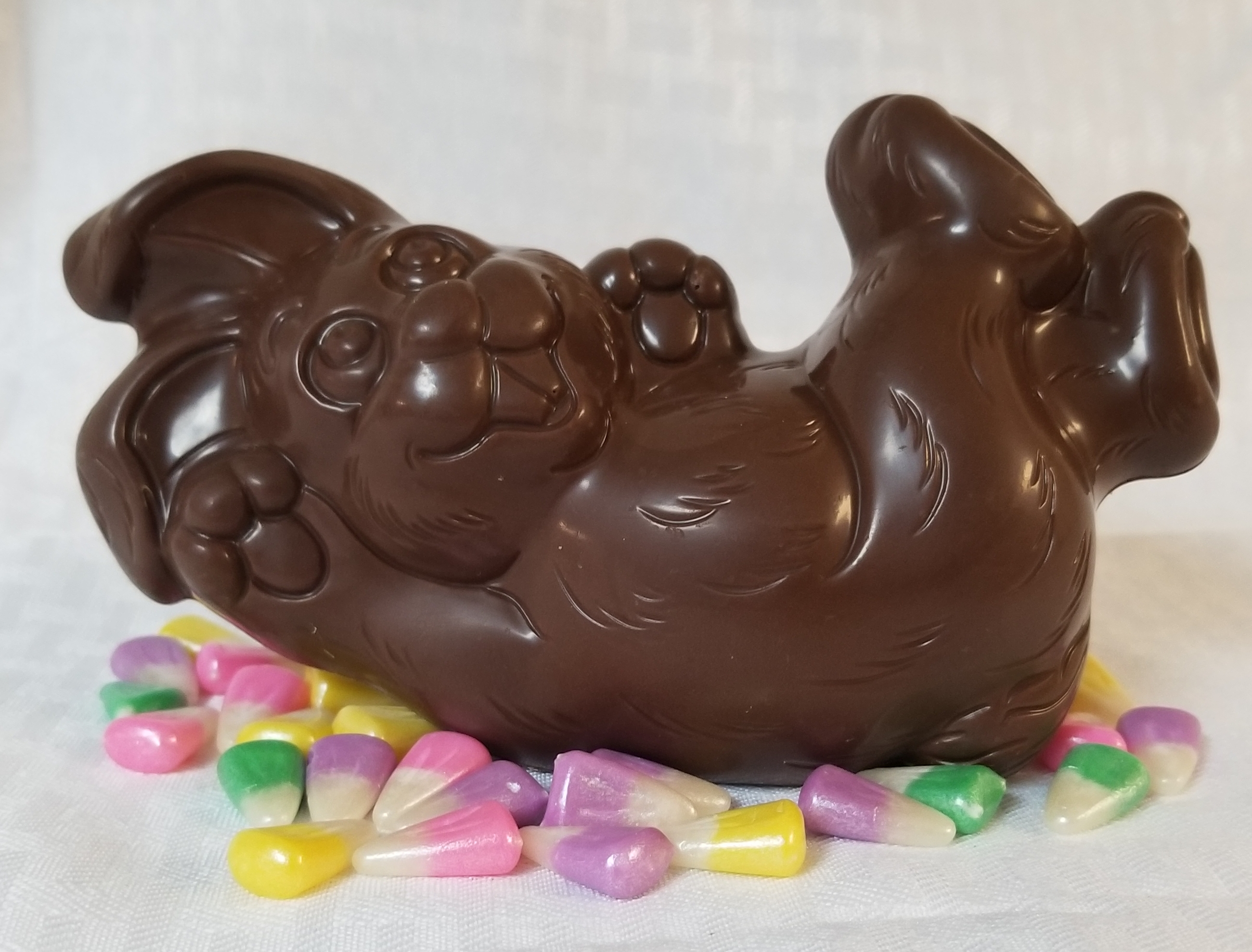 A silly little rabbit made with milk chocolate.